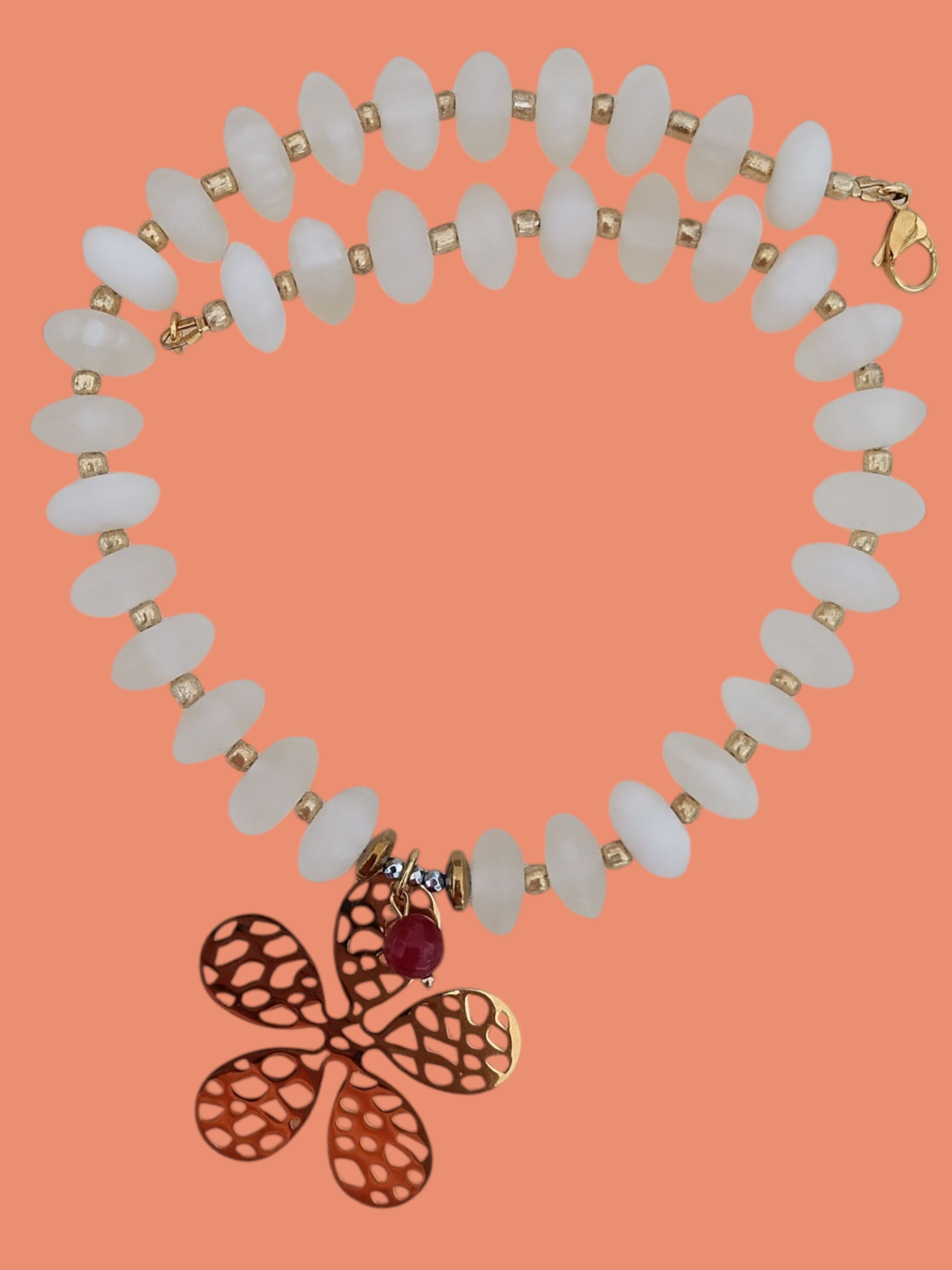 Resina, Flor Stainless Steel, separadores Cristal y terminaciones en Stainless Steel