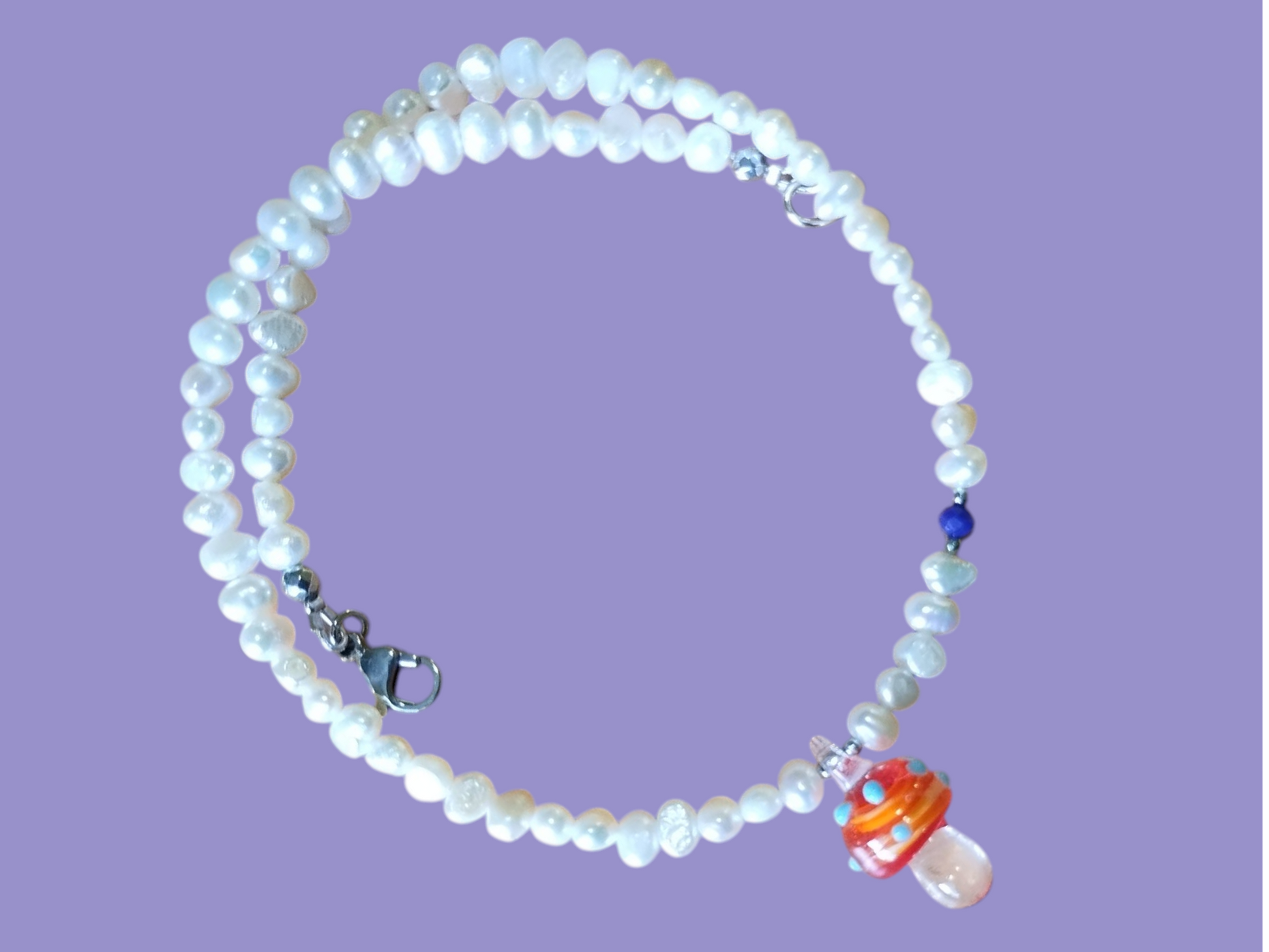 Perlas Cultivadas, Lampwork, detalle en Cristal Murano y terminaciones en Stainless Steelย