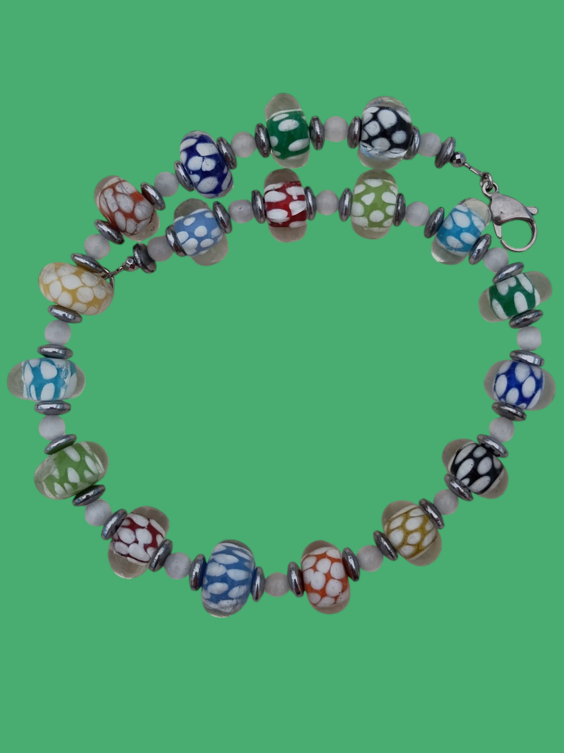 Lampwork, Cat Eye, Hematita y terminaciones en Stainless Steel
